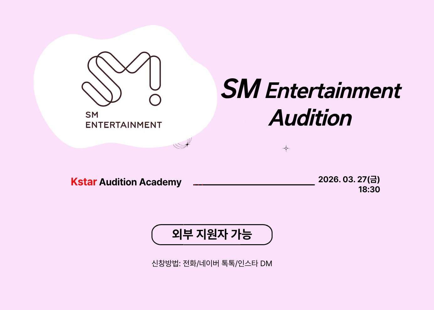 SM 엔터테인먼트 내방오디션 안내(외부 지원자 가능)